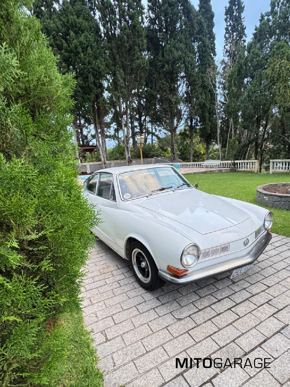 VW Karmann Guia TC 1974, na cor branca, carinhosamente chamado de “Coronel”, motor 1600 carburação dupla, possui todos frisos e emblemas, jogo de Rodas Gaúchas, Interior no padrão original na cor preta.