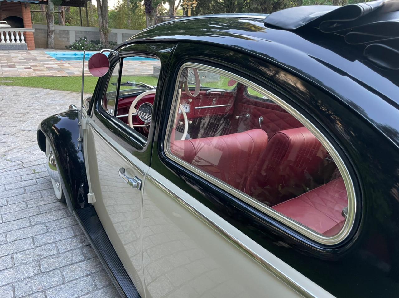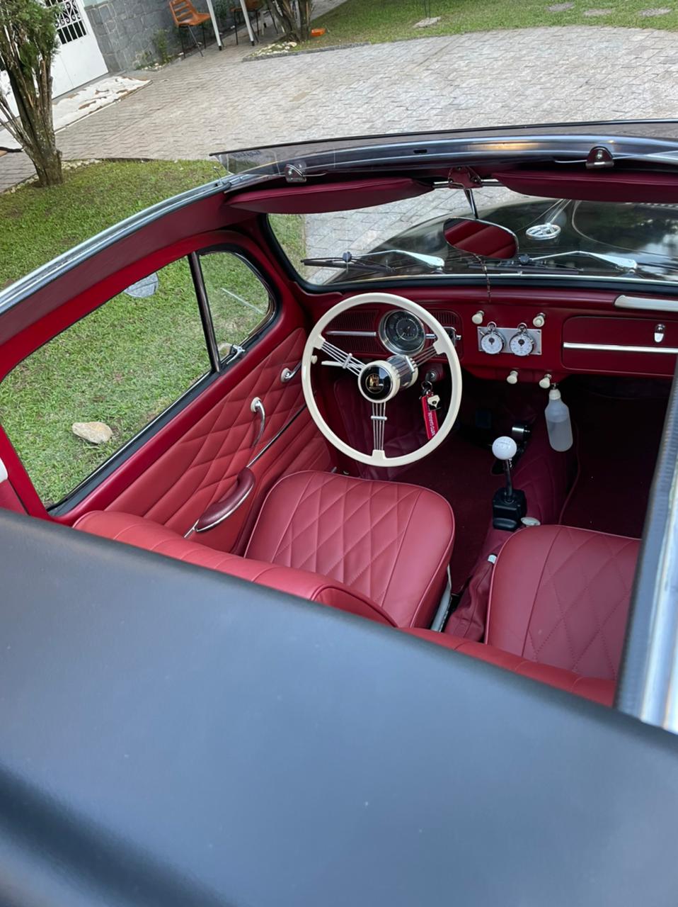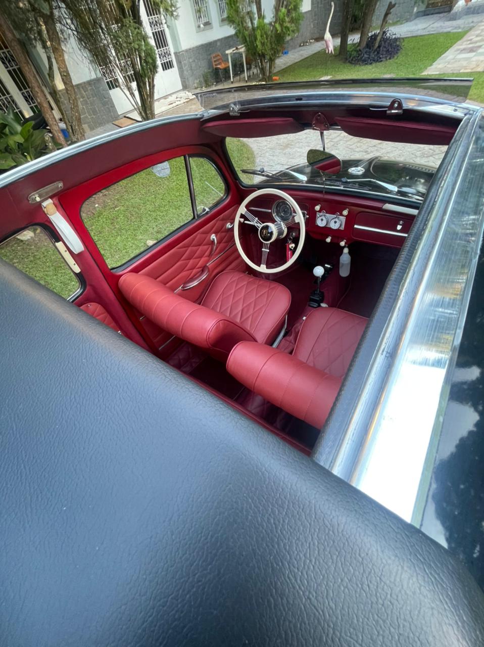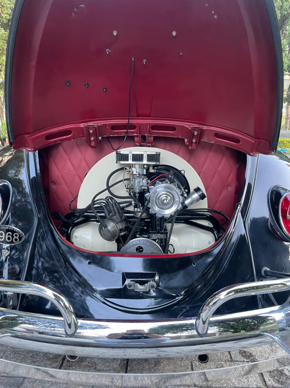VW Fusca 1968, Pintado em 3 cores, Preto, Branco e Vermelho, Kustomizado by Victor Galli, carro exclusivíssimo com muitos acessórios raros, Ragtop, estribos Empi, possui lentes originais de porsche 356, Ragtop, Volante Banjo Empi com Botão de buzina wolfsburg, Antena Truffi, Ar Condicionado de época em inox acima da porta do passageiro, dois relógios Tag Heuer originais para tomada de tempo no painel, pedal Roller, Interior em couro legítimo na cor vermelha, exclusivo, desenhado a mão e executado com primazia, Rodas Aro 15″encomendadas na Rodabras para ser vermelha e cromada, com pneus faixa branca, parachoques cromados com batentes e puleiro, protetor dianteiro e traseiro de parachoques, buzina Hella exposta, Retrovisores estilo HotRod, motor customizado e escapamento maf em inox.