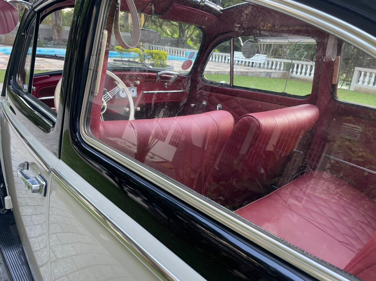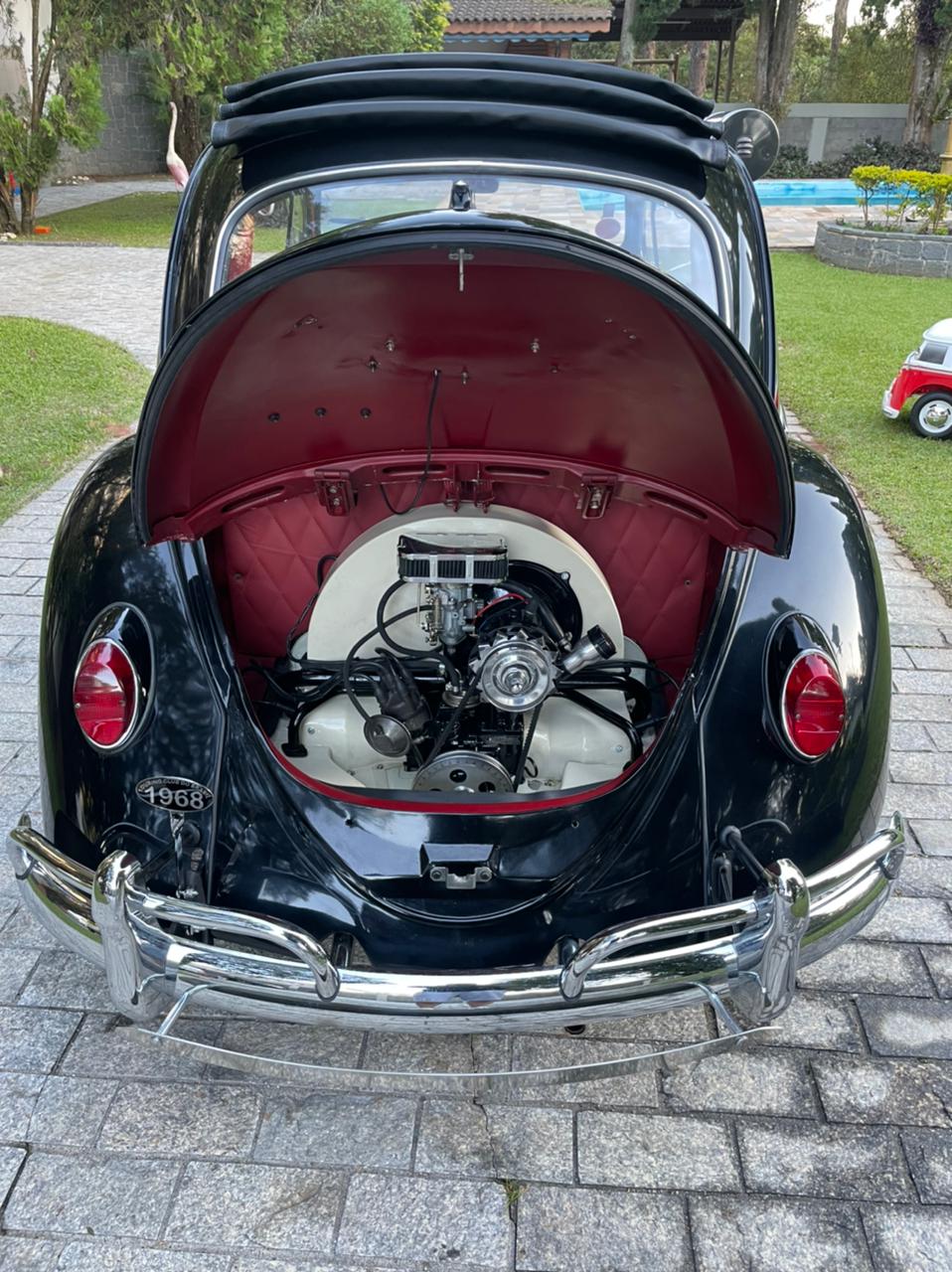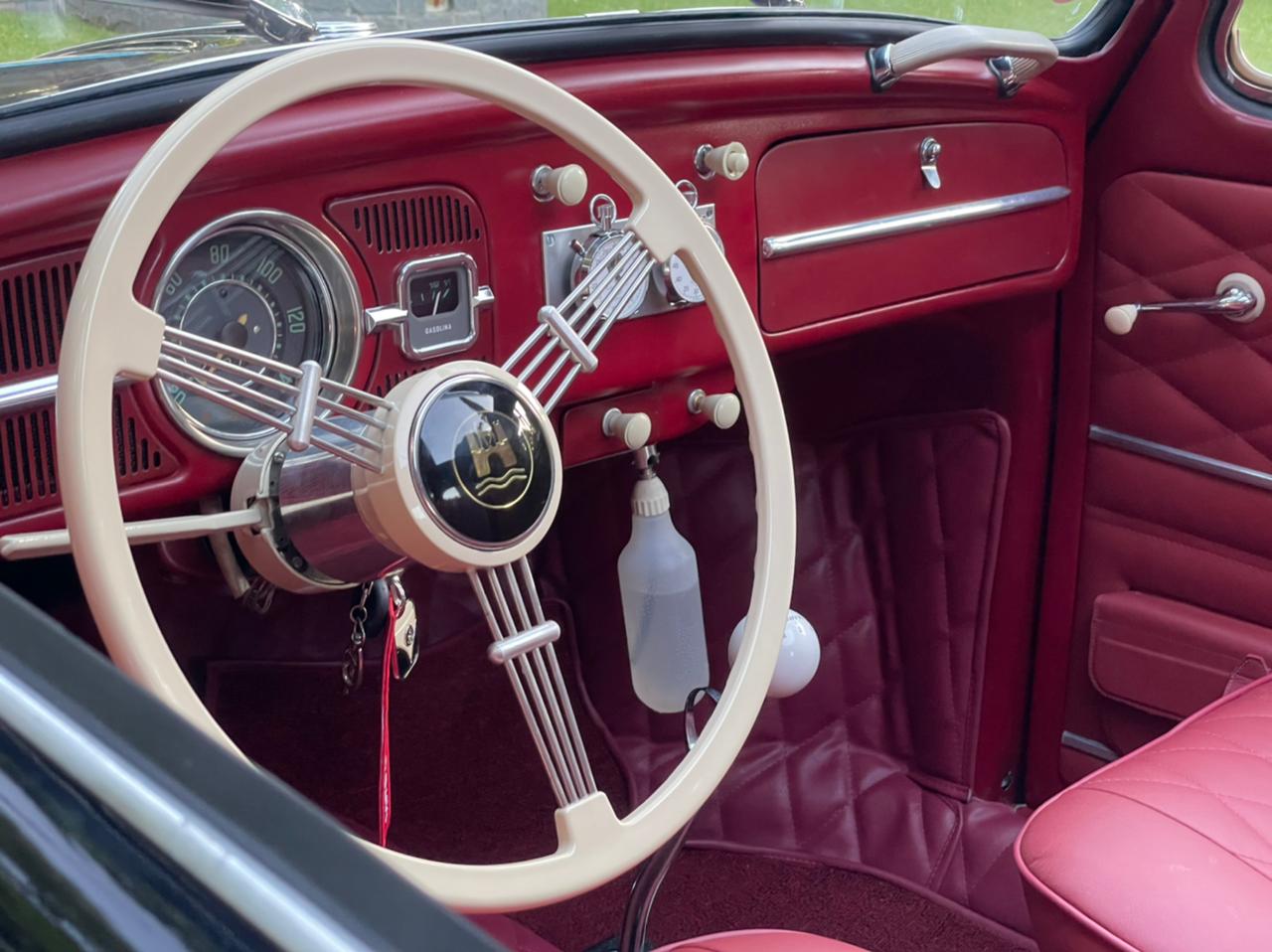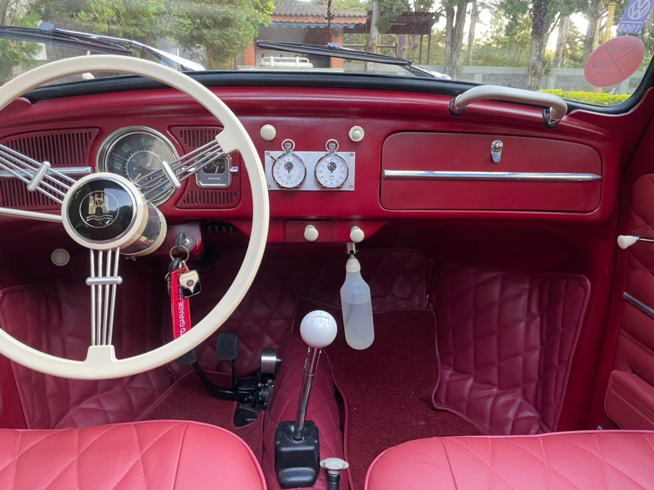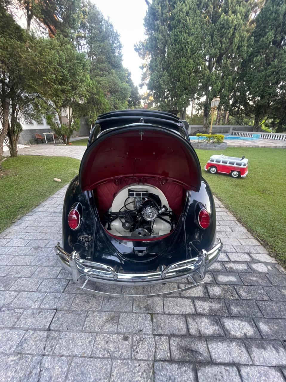 VW Fusca 1968, Pintado em 3 cores, Preto, Branco e Vermelho, Kustomizado by Victor Galli, carro exclusivíssimo com muitos acessórios raros, Ragtop, estribos Empi, possui lentes originais de porsche 356, Ragtop, Volante Banjo Empi com Botão de buzina wolfsburg, Antena Truffi, Ar Condicionado de época em inox acima da porta do passageiro, dois relógios Tag Heuer originais para tomada de tempo no painel, pedal Roller, Interior em couro legítimo na cor vermelha, exclusivo, desenhado a mão e executado com primazia, Rodas Aro 15″encomendadas na Rodabras para ser vermelha e cromada, com pneus faixa branca, parachoques cromados com batentes e puleiro, protetor dianteiro e traseiro de parachoques, buzina Hella exposta, Retrovisores estilo HotRod, motor customizado e escapamento maf em inox.