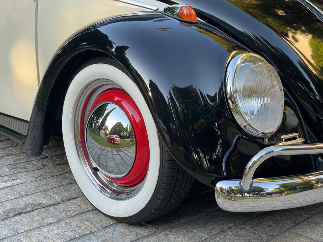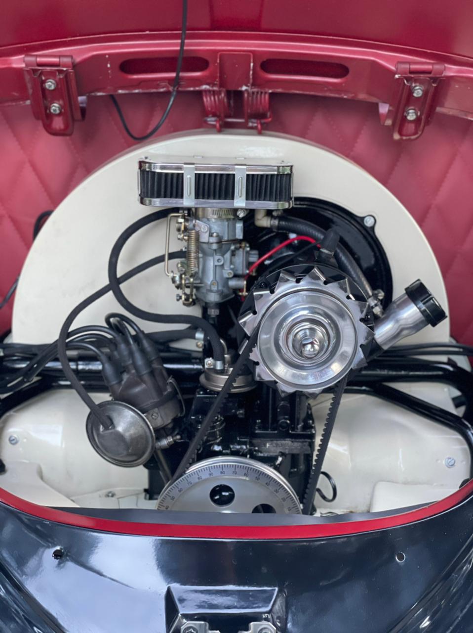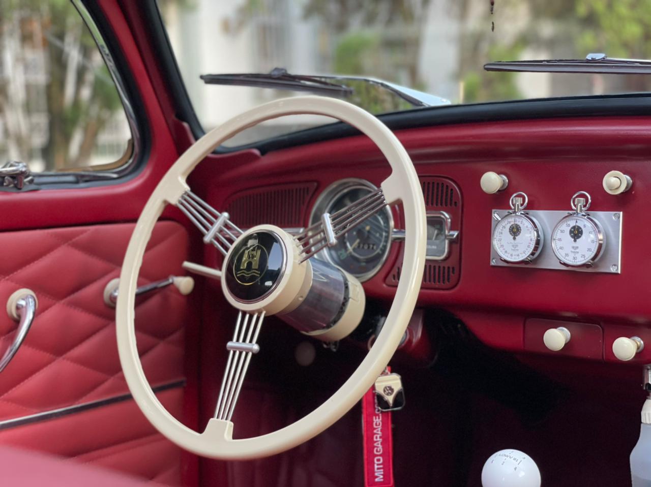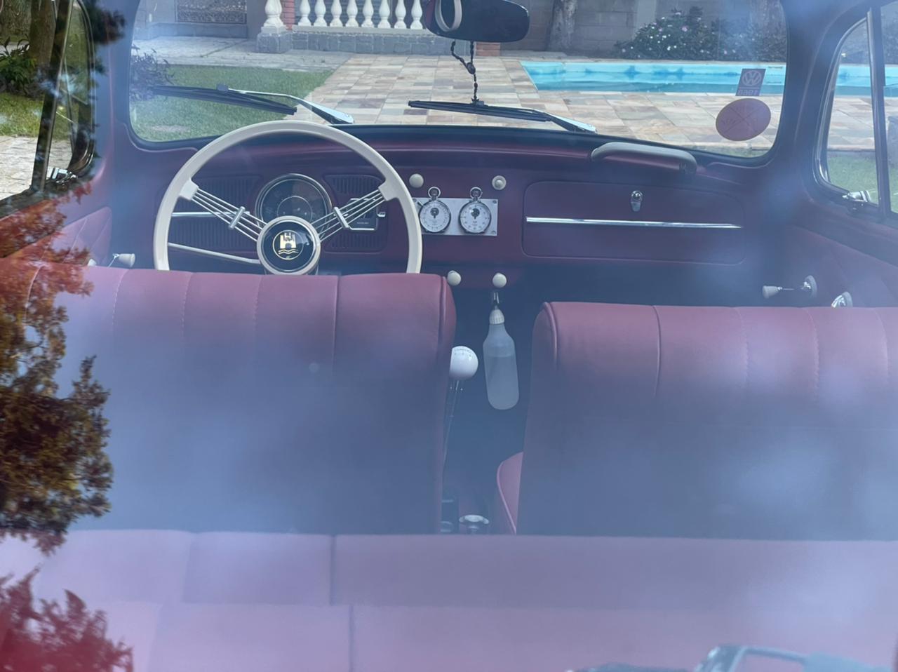 VW Fusca 1968, Pintado em 3 cores, Preto, Branco e Vermelho, Kustomizado by Victor Galli, carro exclusivíssimo com muitos acessórios raros, Ragtop, estribos Empi, possui lentes originais de porsche 356, Ragtop, Volante Banjo Empi com Botão de buzina wolfsburg, Antena Truffi, Ar Condicionado de época em inox acima da porta do passageiro, dois relógios Tag Heuer originais para tomada de tempo no painel, pedal Roller, Interior em couro legítimo na cor vermelha, exclusivo, desenhado a mão e executado com primazia, Rodas Aro 15″encomendadas na Rodabras para ser vermelha e cromada, com pneus faixa branca, parachoques cromados com batentes e puleiro, protetor dianteiro e traseiro de parachoques, buzina Hella exposta, Retrovisores estilo HotRod, motor customizado e escapamento maf em inox.