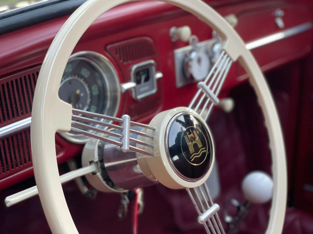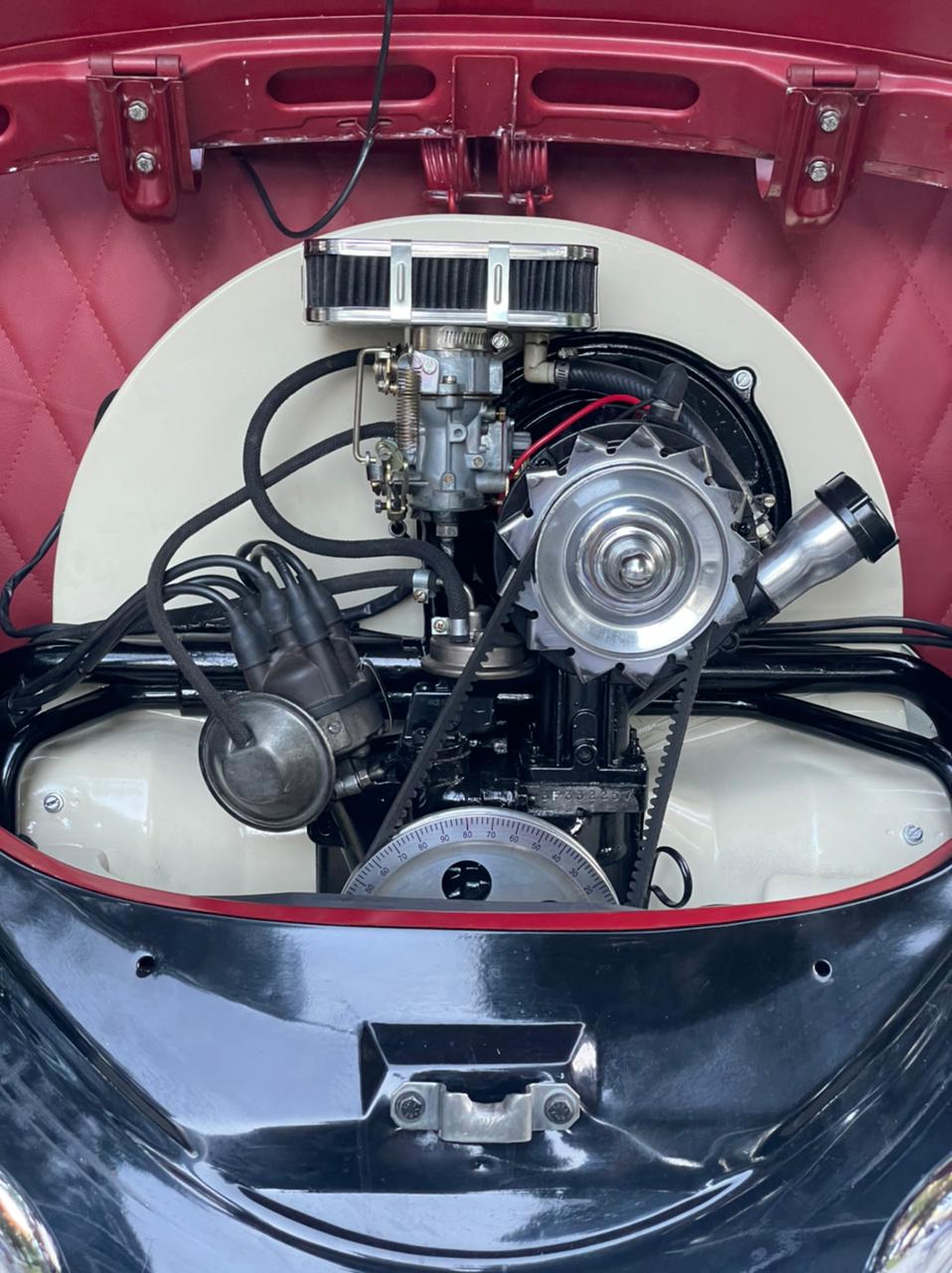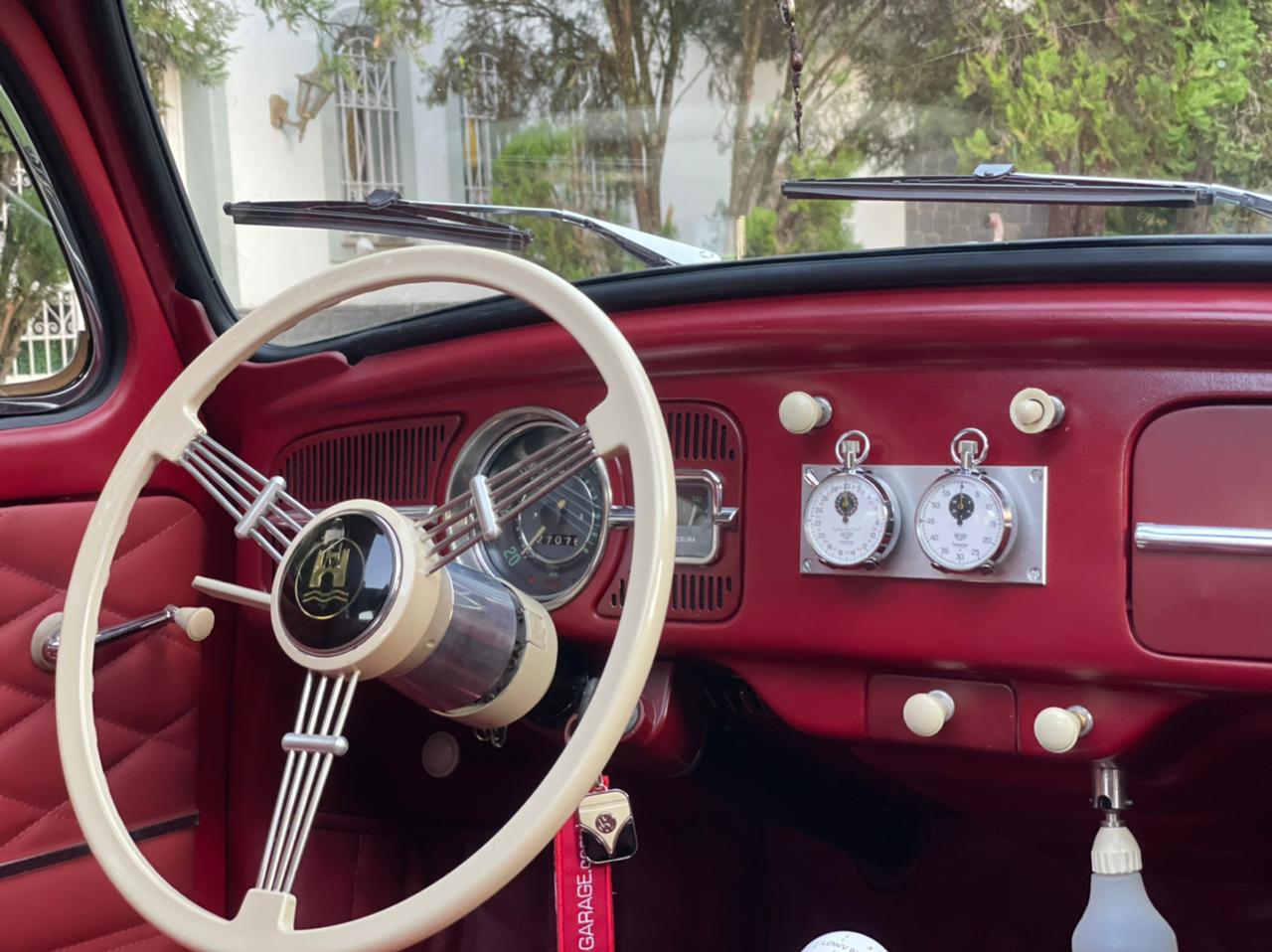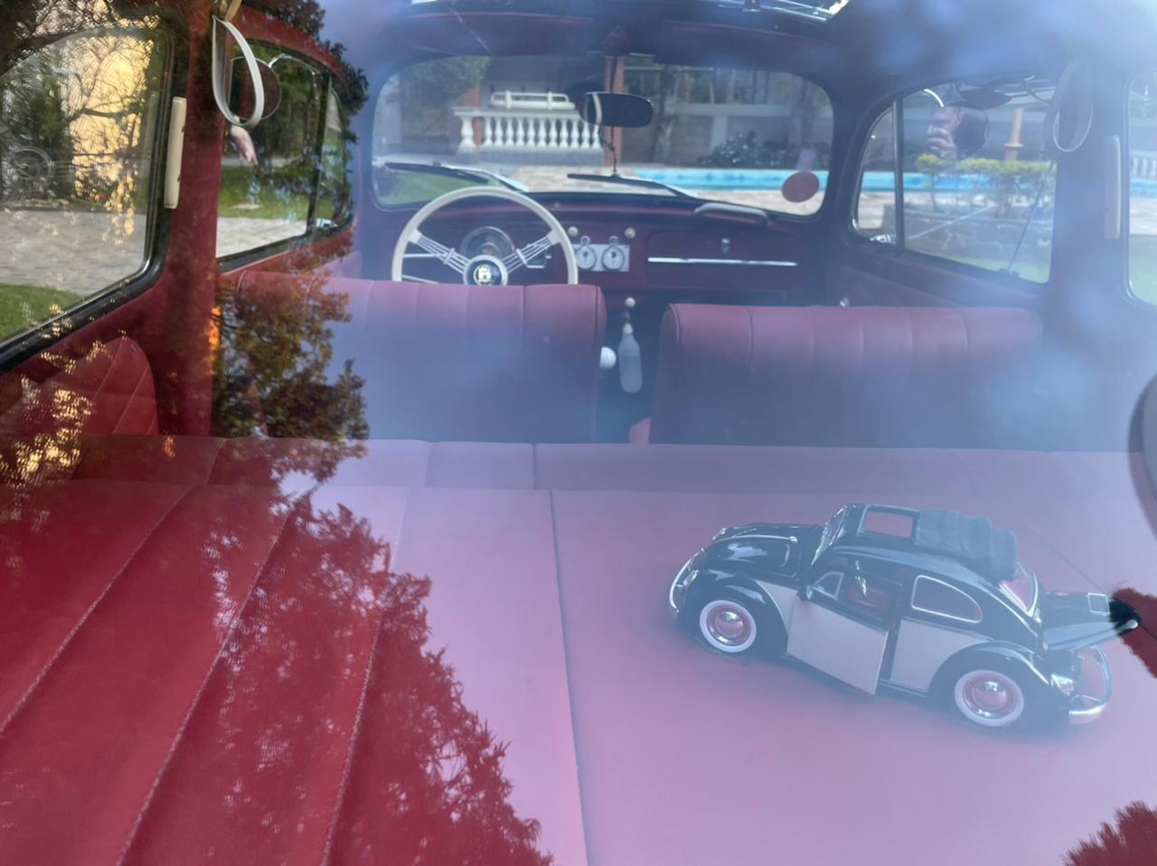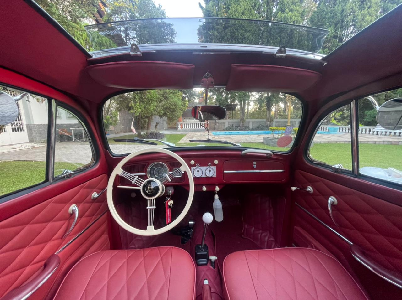 VW Fusca 1968, Pintado em 3 cores, Preto, Branco e Vermelho, Kustomizado by Victor Galli, carro exclusivíssimo com muitos acessórios raros, Ragtop, estribos Empi, possui lentes originais de porsche 356, Ragtop, Volante Banjo Empi com Botão de buzina wolfsburg, Antena Truffi, Ar Condicionado de época em inox acima da porta do passageiro, dois relógios Tag Heuer originais para tomada de tempo no painel, pedal Roller, Interior em couro legítimo na cor vermelha, exclusivo, desenhado a mão e executado com primazia, Rodas Aro 15″encomendadas na Rodabras para ser vermelha e cromada, com pneus faixa branca, parachoques cromados com batentes e puleiro, protetor dianteiro e traseiro de parachoques, buzina Hella exposta, Retrovisores estilo HotRod, motor customizado e escapamento maf em inox.